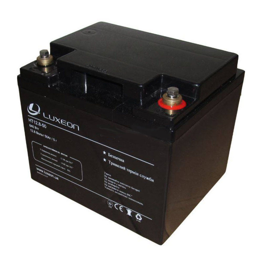 - Более высокая термическая и химическая стабильность. Аккумуляторная батарея Luxeon LiFEPO4 12В 50АЧ HT12.8-50 является пожаробезопасной.