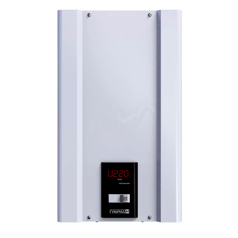 Устанавливать и эксплуатировать стабилизатор Гибрид рекомендуется в сухих и отапливаемых помещениях. Настенную установку рекомендуется производить в вертикальном положении (вентиляторами вверх), оставив сверху и снизу 10-15 см для охлаждения. Подключение осуществляется к существующей проводке через клеммную колодку для аппаратов от 5.5 до 9 кВт и через встроенный шнур с вилкой и розеткой на корпусе стабилизатора для моделей 2.2 и 3.5кВт.