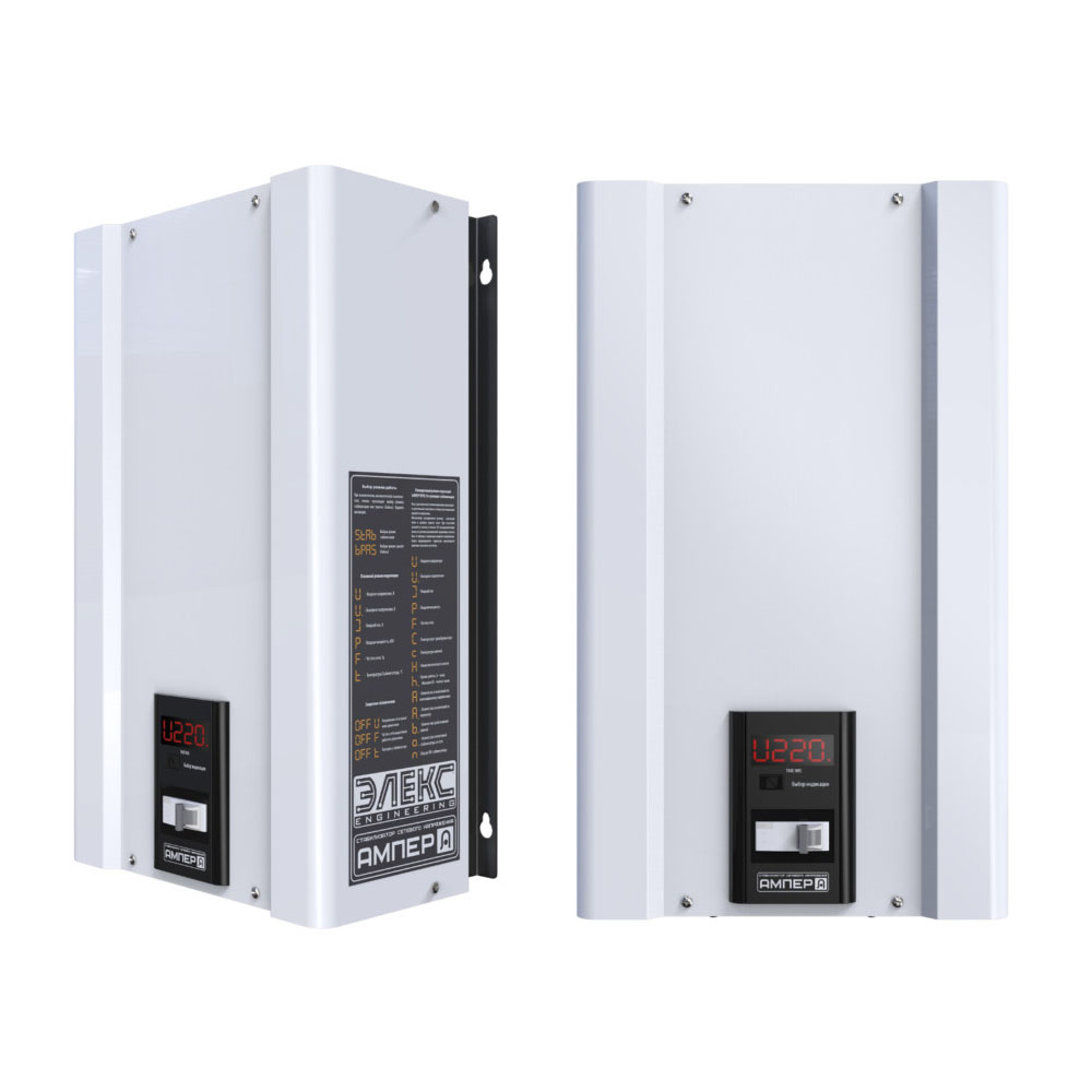 Стабилизатор Элекс Ампер 16/1/325 оснащен всеми необходимыми системами защиты. Силовые компоненты надежно