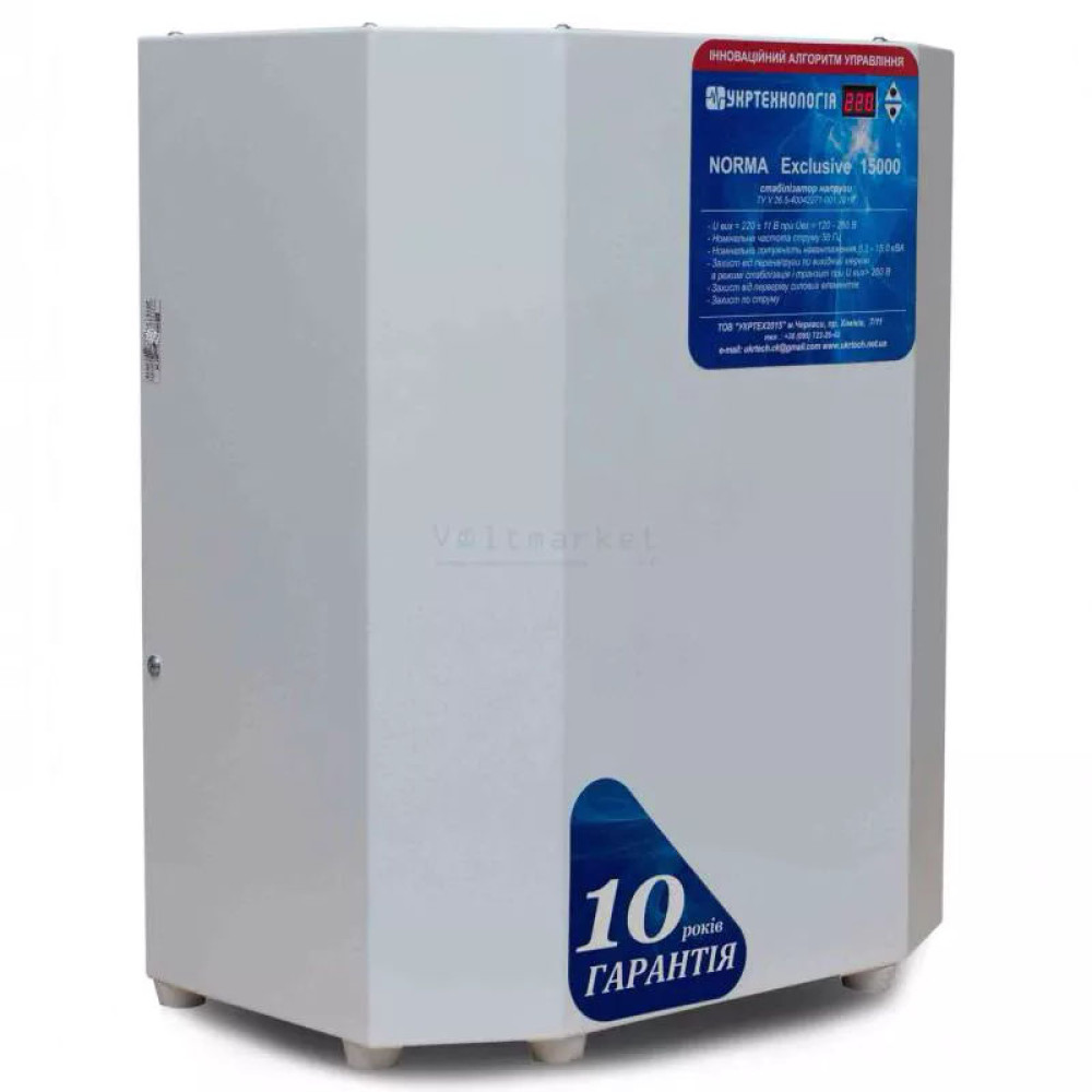 Особенности и технические характеристики однофазного стабилизатора напряжения Укртехнология НСН-15000 NORMA exclusive