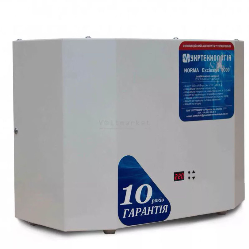 Основные технические характеристики и особенности однофазного стабилизатора напряжения Укртехнология НСН-9000 NORMA Exclusive
