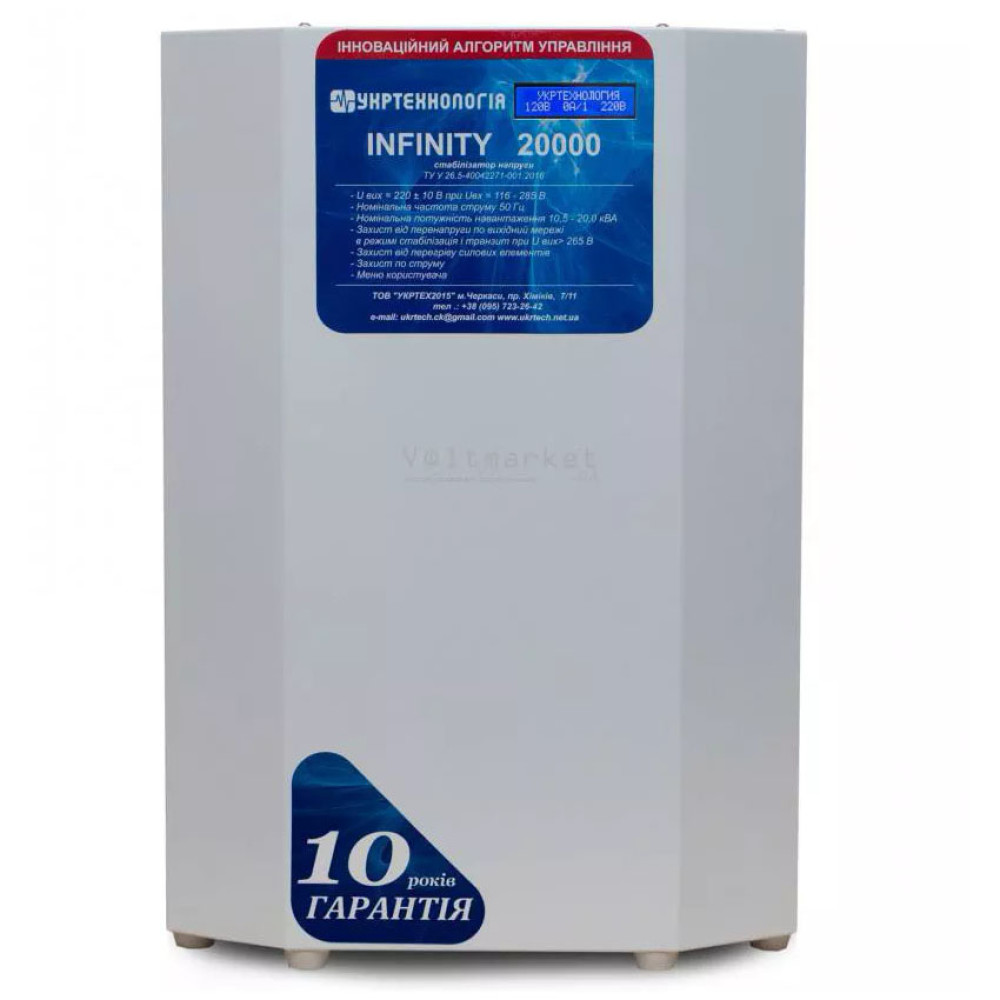 Стабилизатор напряжения симисторный 20 кВт УКРТЕХНОЛОГИЯ INFINITY 20000