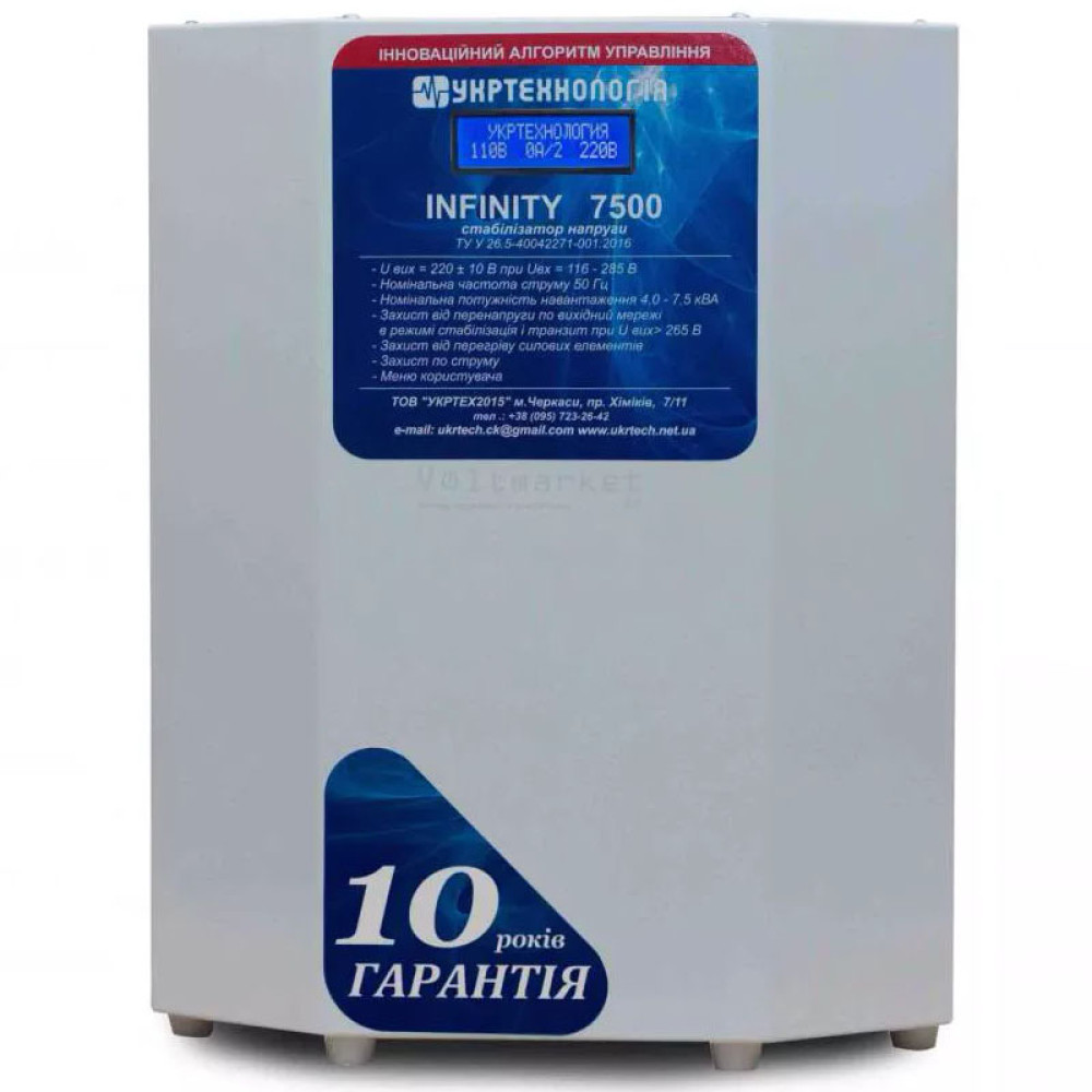 Основные технические характеристики стабилизатора напряжения Укртехнология INFINITY 7500